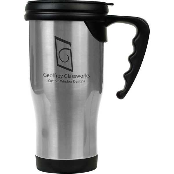 14 oz. Silver Laserable Stainless Steel Travel Mug with Handle