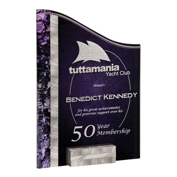 7" x 10" Silver/Purple SunRay Acrylic Award with Base