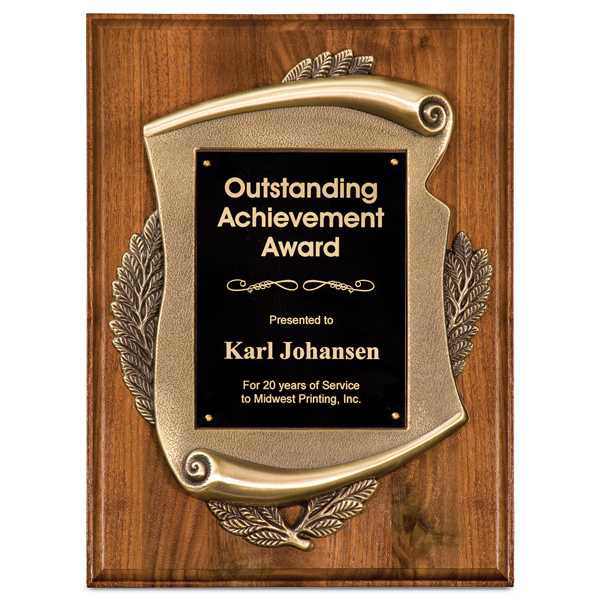 9" x 12" Genuine Walnut Plaque w/ Scroll Frame & plate