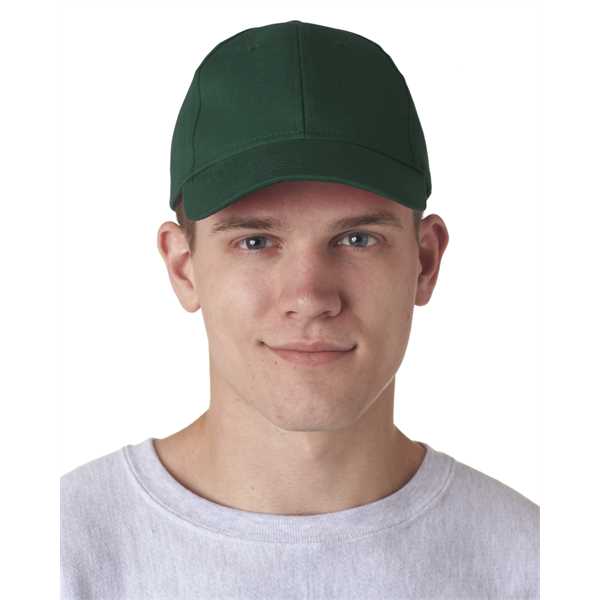 100% cotton; Mid-profile; 6-panel; Pre-curved visor; Triple-stitched sweatband; Adjustable self-fabric strap closure with brass snap-buckle; 4"w x 2 1/2"h imprint area
