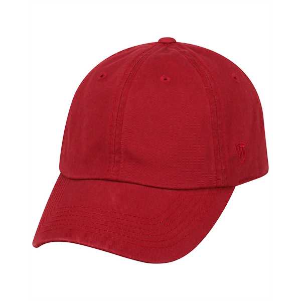 100% washed cotton twill; One size fits most; 6 panel; Unstructured; Low profile; Adjustable self fabric closure
