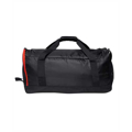100% polyester; two-way zip-into main compartment; front external zippered pocket; side mesh pocket and side zippered shoe pocket with metal eyelets for ventilation; top padded grab handle and shoulder strap; 23.75" w x 12" h x 10" d