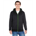 6.5 oz.; 100% Polyester; EL (Electroluminescent Lighting) lit piping on zipper placket and hood; Three light-up settings; Batteries not included; Set-in sleeves and pouch pocket