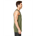 5.1 oz. 65/35 cotton/polyester; Black piped neck and armhole; Rail road stitched bottom hem; Unisex styling; Modern Fit