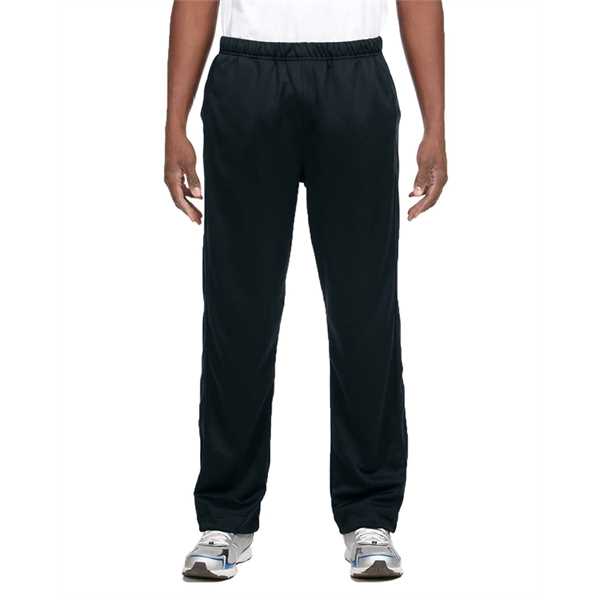 7.5 oz., 100% polyester fleece; anti-pill; covered elastic waistband with inside drawcord; sideseam pockets; self-fabric sideseam gusset; outside ankle zippers