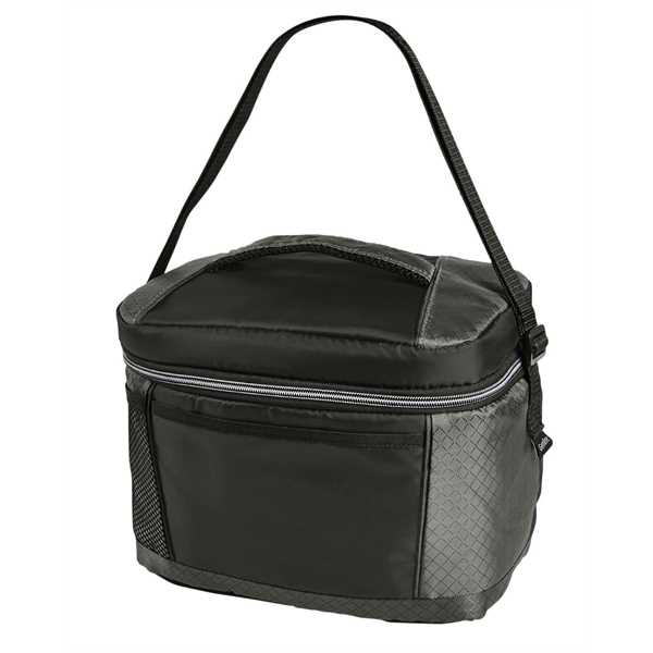 210D polyester, 420D polyester ripstop; Zippered closure to large main compartment; Front slash pocket; Side mesh water bottle pocket; Padded mesh grab handle; Adjustable shoulder strap; Heat sealed interior; 16-can capacity; 11"W x 8"H x 7.25"D