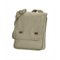 Large main compartment; Inside zippered pocket; Large front flap for easy embellishment; Antique brass turn-buckle closures; Adjustable webbing shoulder strap with antique brass slider; Self fabric binding