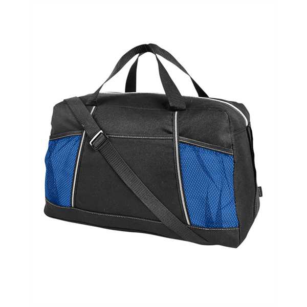 600D polyester; Front slash pocket and dual mesh water bottle pockets; Adjustable shoulder strap; Large main compartment with zippered closure; Adjustable shoulder strap and top grab handles; Kid friendly; 18"W x 11"H x 9"D