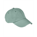 100% cotton twill; Heavy enzyme garment wash; 6-panel, structured; Contrasting front panels and bill, top button matches bill; Pre-curved bill; Sewn eyelets; Self-fabric closure with metal buckle and grommet tuck-in