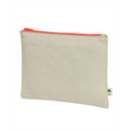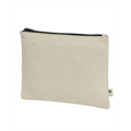55% hemp, 45% cotton; Contrast zipper; Self-fabric loop; Hemp flag tag; 9" wide x 7" high