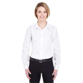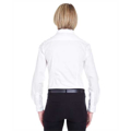 3.4 oz. easy-care 60% cotton/40% polyester broadcloth; Wrinkle-free finish; Front and back darts for a feminine silhouette; Spread collar; Dyed-to-match buttons; 2-button adjustable cuffs with button-through sleeve plackets