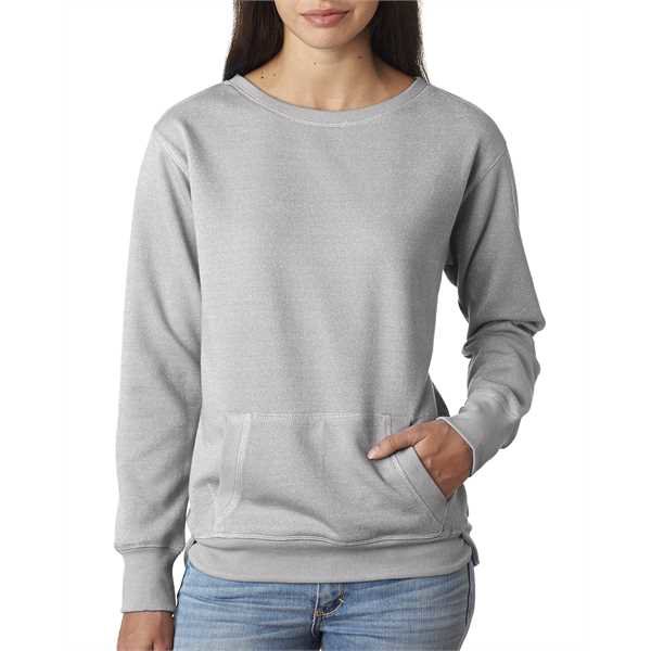 8 oz., 55% cotton, 25% metallic yarn, 20% polyester French terry; Glitter knit and cover-stitched throughout; 2x1 rib-knit cuffs; Waistband and pocket openings; Extended back length