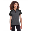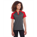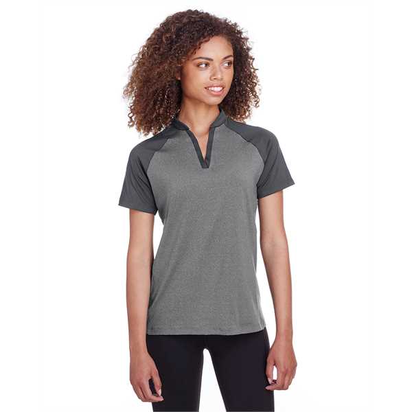 90% polyester / 10% elastane jersey 190 gms ; faux collar ; princess seams ; silver iconic Spyder bug on left sleeve ; Spyder branding on back ; heathered front and back body
