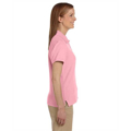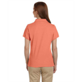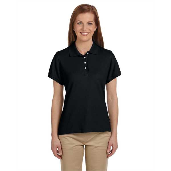 6.8 oz., 100% combed cotton piqué; No-pill, no-fade, no-shrink, no-curl collar, no-wrinkle performance; Gently shaped for a woman’s body; Narrower, more feminine placket