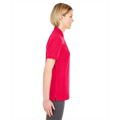 6.5 oz. 65% polyester, 35% cotton piqué; Bio-washed with silicone finish for a soft and luxurious hand; Industrial laundry friendly up to 15 washes; No-fade; No-pill; Shrink- and wrinkle-resistant; Bio-washed with silicone finish for a soft and luxurious hand; Industrial laundry friendly up to 15 washes; Feminine fit; Double-needle stitching throughout