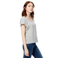 Neck with 3/8" self-binding; 1/2" turnback hem with double-needle stitching; This is a loose scoop body with a center back seam; Made in USA