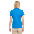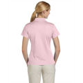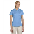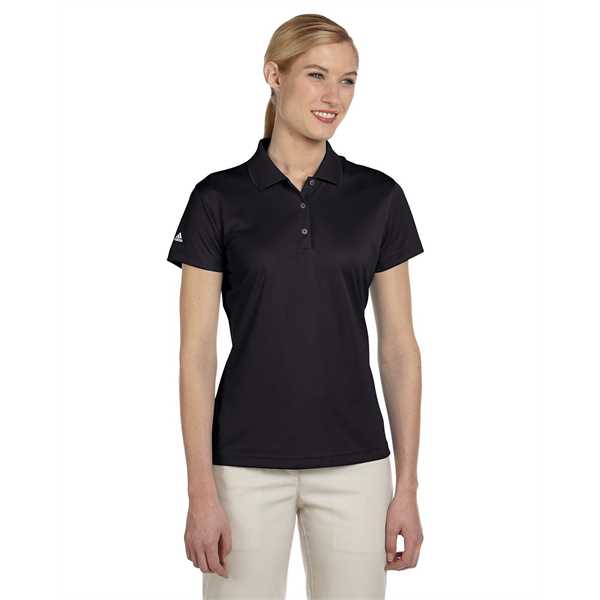 5.1 oz., 100% polyester; rib knit collar; three-button placket; open-hem sleeves; contrast adidas brandmark on right sleeve; bust darts; White adidas logo on right sleeve