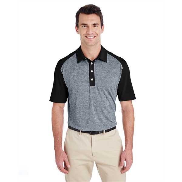 4.72 oz., 100% polyester; 4-button placket; Self collar; Heathered front and back body; Adidas logo at back neck