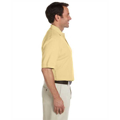 6.8 oz., 100% combed cotton piqué; No-pill, no-fade, no-shrink, no-curl collar, no-wrinkle performance; Relaxed fit; Striped neck tape; Side vents