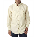 55% cotton 45% polyester rip stop; Wrinkle-resistant; Stain & soil repellant; Chambray contrast in neckband, yoke & cuffs; Button-down collar; 2 button-thru patch pockets; Triple needle sewing