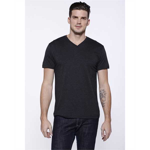 4.3 oz., 50% polyester 25% cotton 25% rayon ; 30 singles ; Side seams; retail fit; Tear-away label; Classic fit; Extra soft cotton blend; Made in a W.R.A.P. certified factory