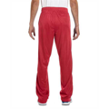7.8 oz., 100% polyester tricot, 75-denier; Raised inner nap; Elasticized waistband with drawcord; On-seam pockets; Open-bottom hem; Extended zippered legs; Back pocket