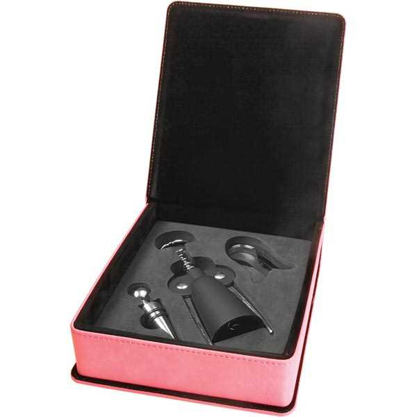 Pink Laserable Leatherette 3-Piece Wine Tool Gift Set