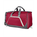 600D polyester; Unique diagonal zippered opening to main compartment; Front zippered pocket with gussets; Side mesh water bottle pocket; Side zippered pocket for essentials; Top grab handles; Locker loop; Adjustable shoulder strap; Removable floorboard for extra support; 19"W x 10.5"H x 10"D