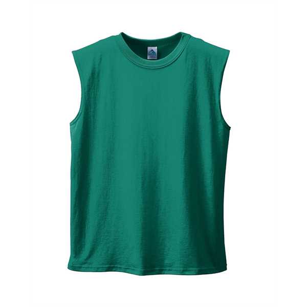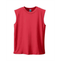 5.2 oz., 50% polyester/50% cotton jersey knit; 1 x 1 rib-knit collar; Double-needle hemmed armholes and bottom