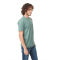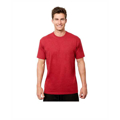 4.3 oz., 30% recycled cotton, 30% cotton & 40% rpet polyester; 30 singles orbital fabric; Slightly heathered; Fabric laundered for reduced shrinkage; 1x1 baby rib-knit set-in collar; Tear-away label; Sideseamed