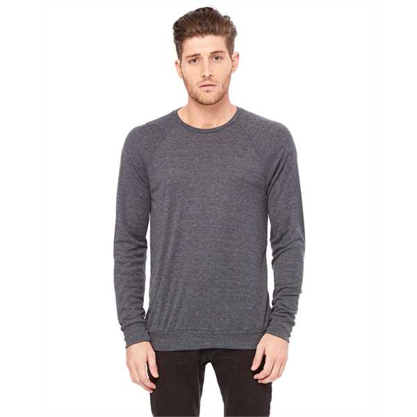 5.3 oz., 65% polyester, 35% viscose; Athletic Heather is 52% polyester, 48% viscose; Retail fit; Unisex sizing; 1x1 smooth ribbed fabric uwith a flat surface ideal for printing; Raglan sleeves; Sideseamed; Tear-away label