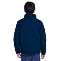 4.5 oz/yd2 / 150 gsm, 3-Layer 94% polyester, 6% spandex woven shell bonded to 100% polyester fleece with inner membrane; Polyester taffeta lining; 100 gsm poly fill in body; 80 gsm in sleeves; 3,000 mm waterproof rating; 1,000 g breathability rating; Insulation: 100 gsm poly fill thermal insulation in body; 80 gsm in sleeves; Storm flap with hidden metal snaps; Center front vision zipper and roll-away hood; Adjustable cuffs with tabs; Lower concealed zippered pockets; Inner pocket