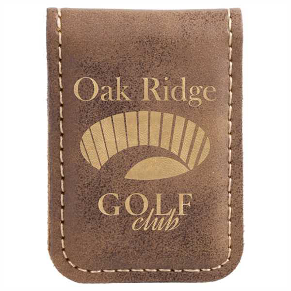 1 3/4" x 2 1/2" Rustic/Gold Laserable Leatherette Money Clip