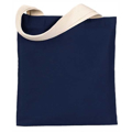 7 oz., 65% polyester, 35% cotton twill; 100% cotton natural web handles reinforced at stress points; 10"w x10"h imprint area; 24" handles; Size: 12 1/2"w x 13 1/2"h; Made in the USA
