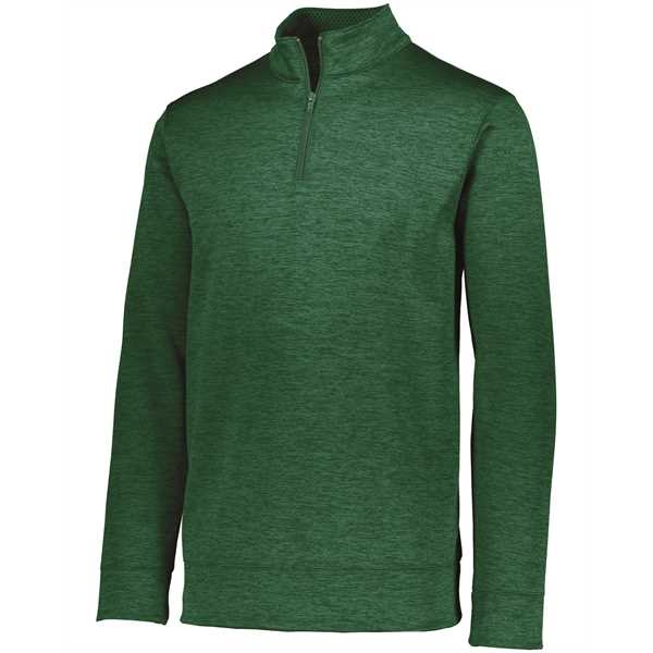 100% polyester tonal performance wicking fleece with mesh lined collar; Wicks moisture; Pad print label; Quarter zip pullover style; Set-in sleeves; Self-fabric cuffs and bottom band
