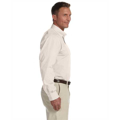 3.4 oz., 55% easy-care cotton, 45% polyester blend; Wrinkle- and stain-resistant; Patented pucker-free taped seams; Specially fused collar, cuffs and placket for total garment performance; Specially constructed adjustable collar for an extra inch of stretch; Split seam back yoke cut on the bias; Rolled collar with pearlized buttons;