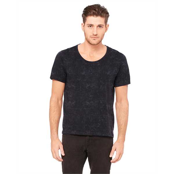 4.2 oz., 100% combed and ringspun cotton; 30 singles; Triblends - 50% poly, 25% combed ringspun cotton, 25% rayon, 40 singles, 3.8 oz.; Black Mineral Wash - 4.4 oz., 52% combed ringspun cotton, 48% poly, 30 singles; Wide neck; Sideseamed; Retail fit; Tear-away label